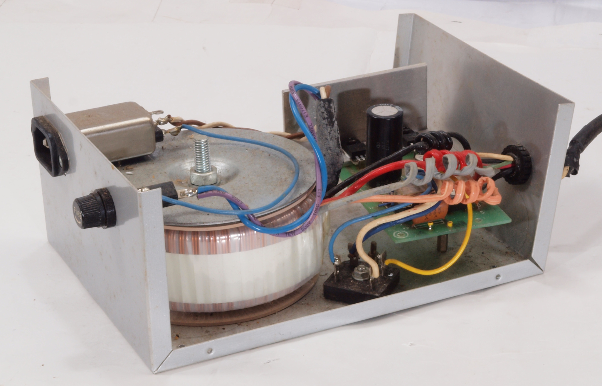 | A64. 製作RY−5500U電源点検中 上から見る。巨大なトロイダルトランスは24V4.17A!純正は19V1A。 | ||||||||||||||||||||||||||||||||||||||||||||||