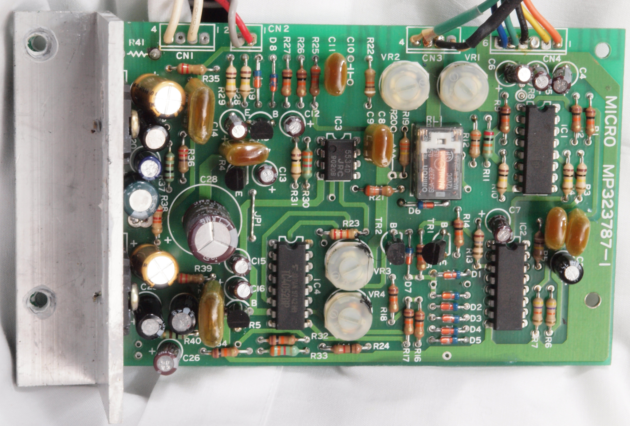 | C22. 修理後 モーターコントロール基板、半固定VR4個、電解コンデンサー18個、モーター駆動AMP−IC.2個、全IC交換、抵抗2個追加。 | ||||||||||||||||||||||||||||||||||||||||||||||
