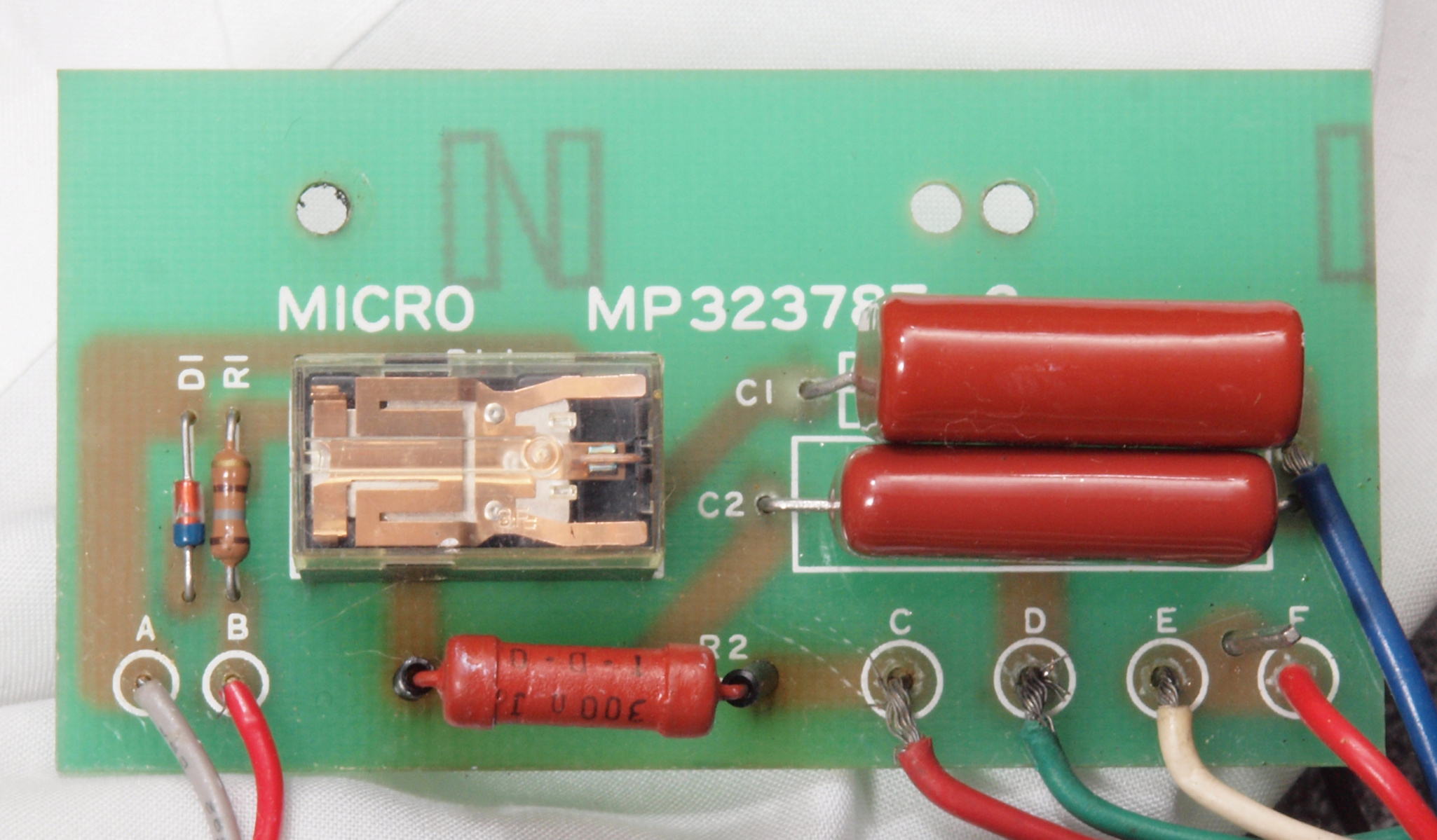 | C32. 修理後 モーター33/45回転切換基板。 フイルムコンデンサー2個、リレー1個交換。 | ||||||||||||||||||||||||||||||||||||||||||||||