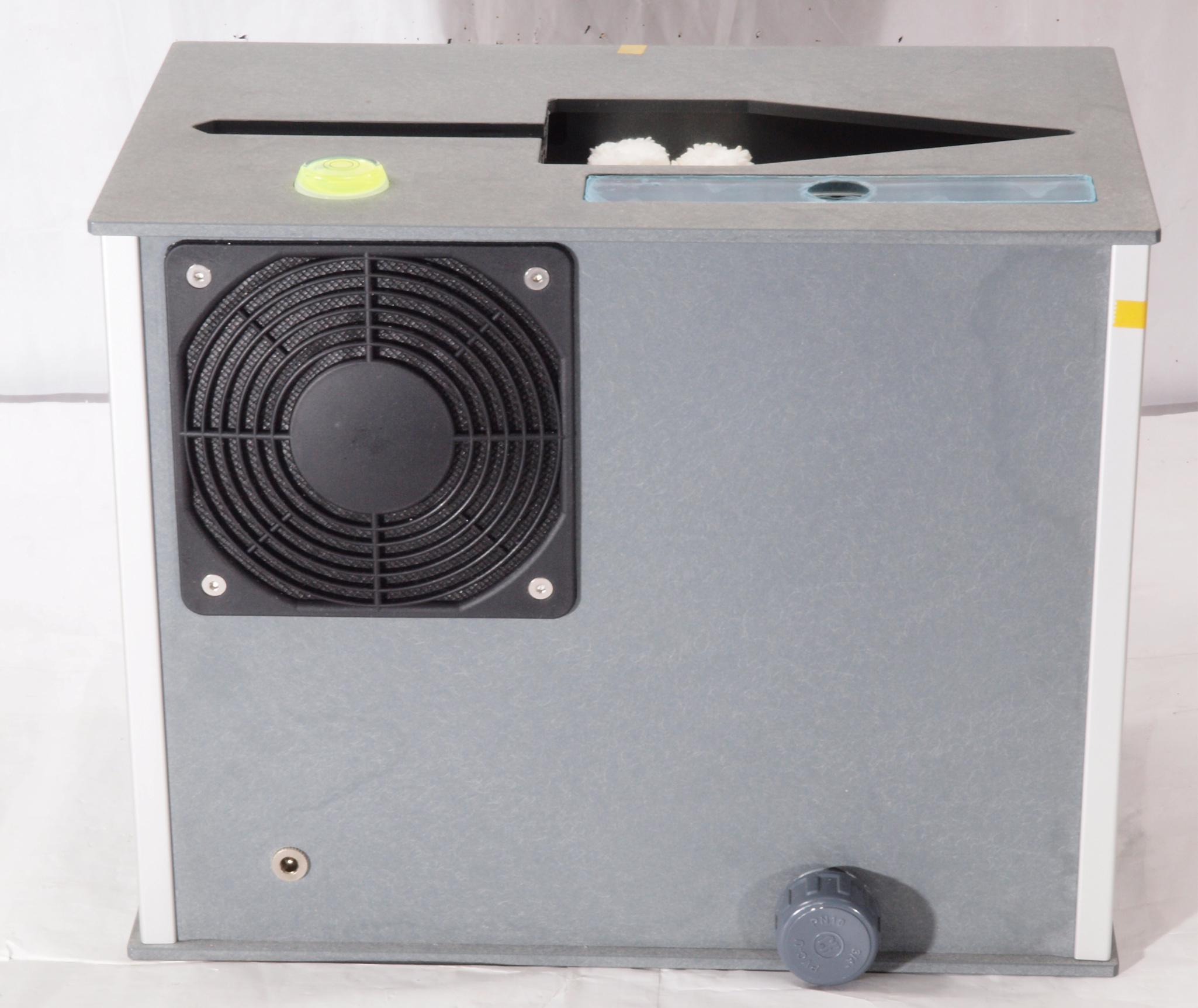 | E3. 洗浄終わり乾燥開始。洗浄終了後、洗浄液が下降しタンク内に収納 。 ブラシが止まり、ファンが回り乾燥開始(レコードは低速にて回転持続中) |