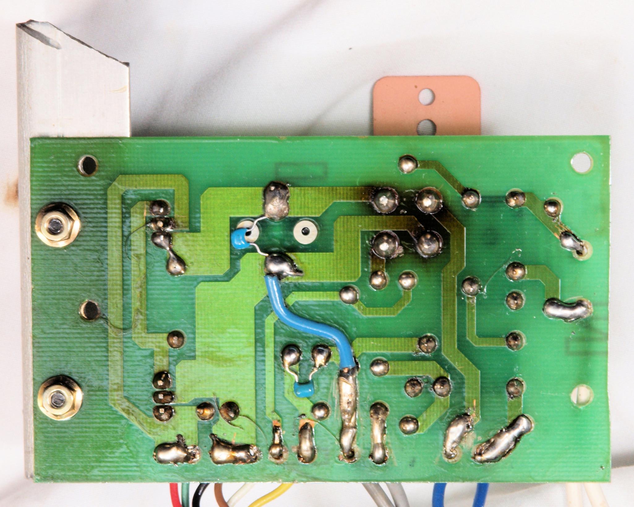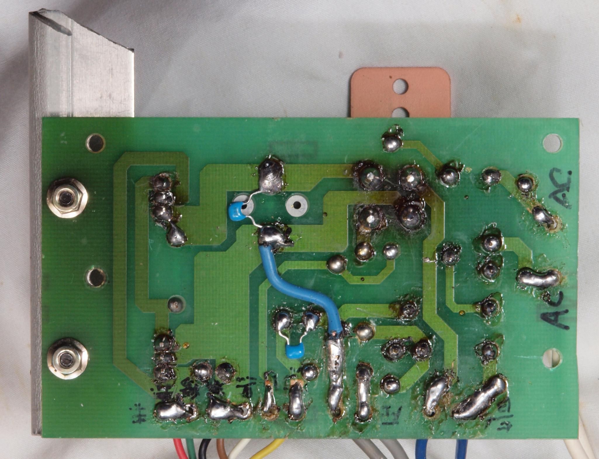 | C24. 修理(半田補正)後 モーターコントロール基板裏。 フイルムコンデンサー1個追加。 | ||||||||||||||||||||||||||||||||||||||||||||||