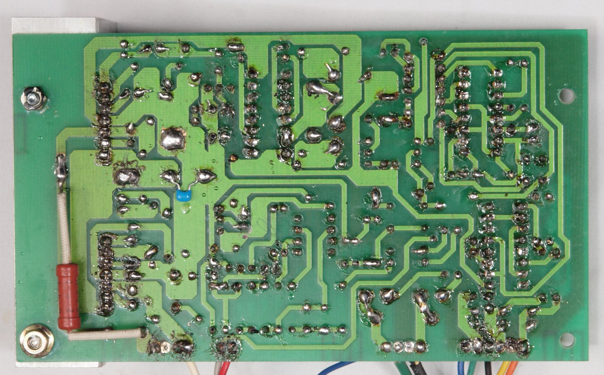 | C14. 修理(半田補正)後 電源部整流基板裏。 フイルムコンデンサー2個追加。 | ||||||||||||||||||||||||||||||||||||||||||||||