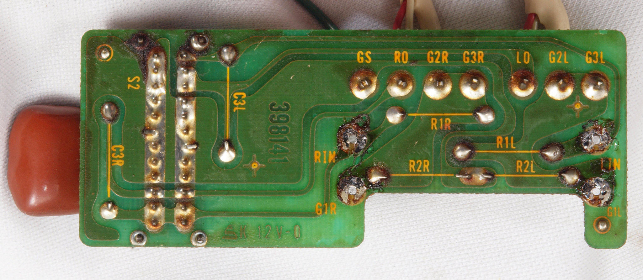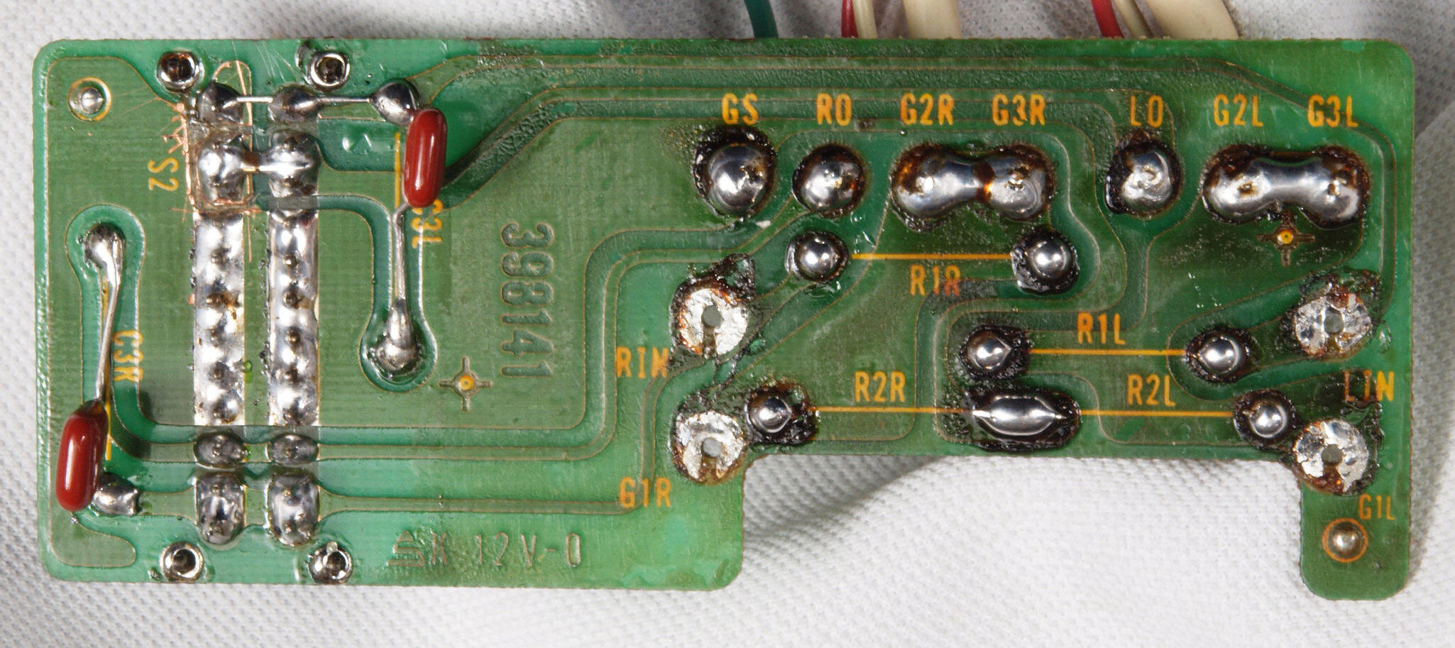 | C73. 修理前 入力RCA端子基板裏 |