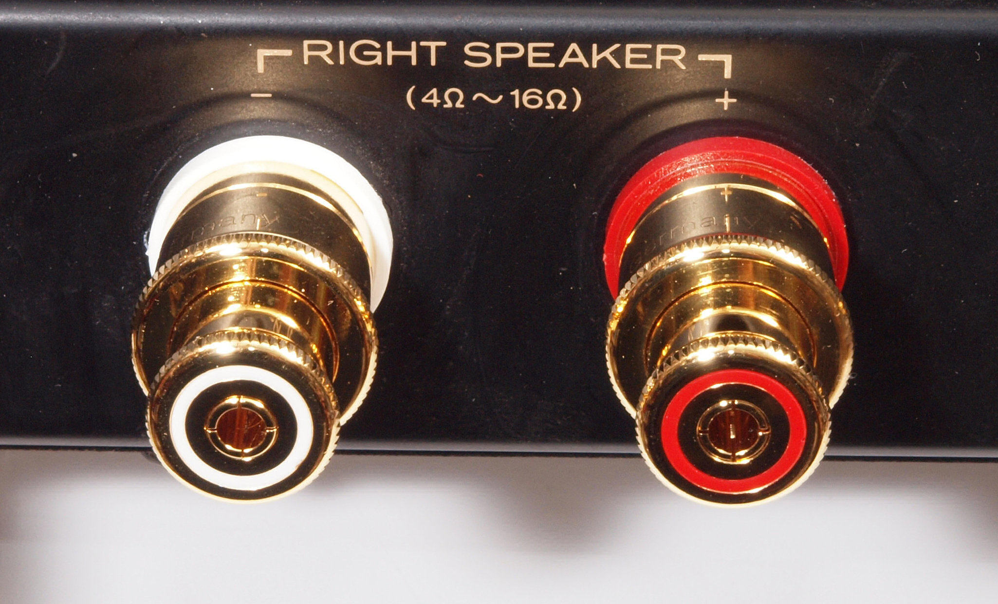 | 注意 このAMPはアースラインが浮いています。 AMPのシャーシにSPの線(アース側)やプリAMPのアースもも接続してはいけません。 RL−SPのアース線も接続(共通)してもいけません、+−の撚りのあるのも使用出来ません。 又、DC(directconnection)入力が可能ですが、絶対に使用しないこと=ここ参照 |
