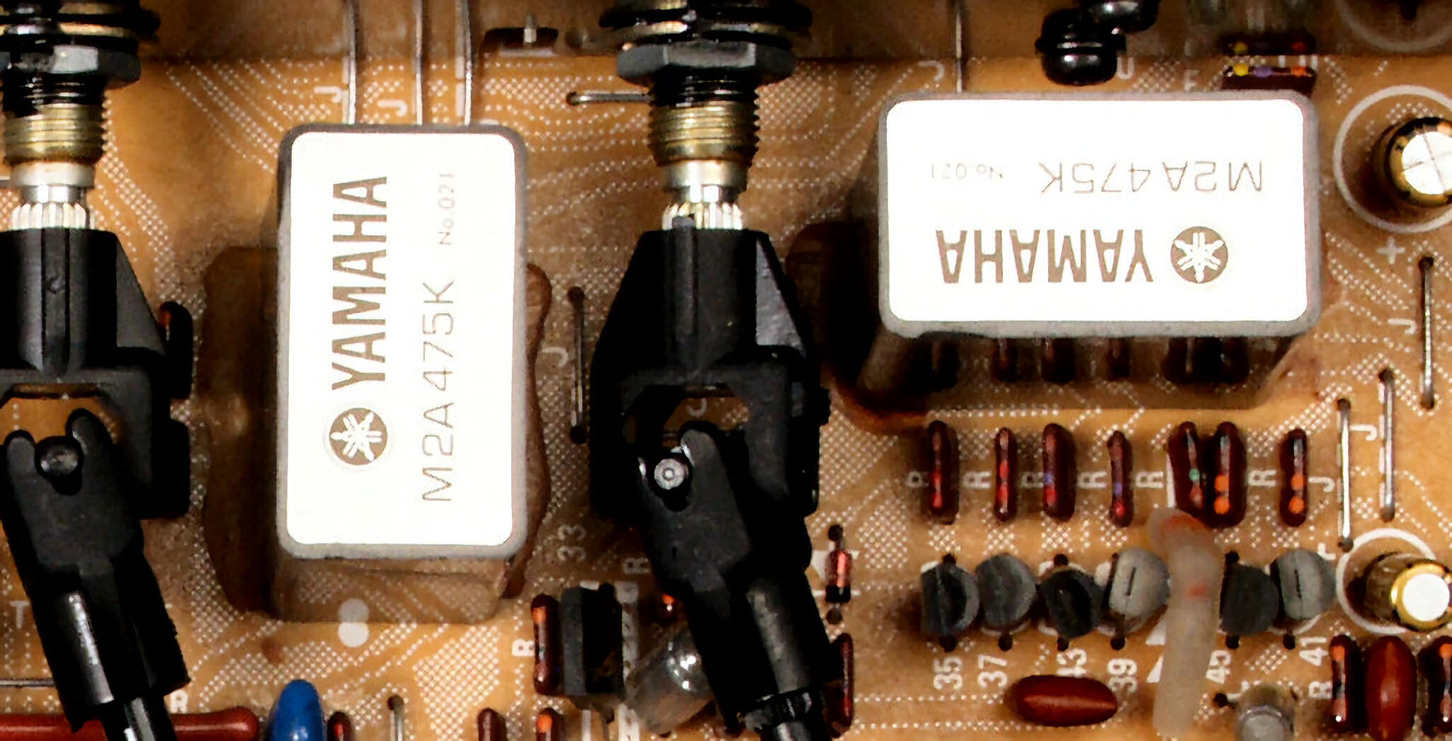 | A29. 点検中 4号基のEQアンプ・ヤマハオリジナルの出力のフイルムコンデンサー。 | ||||||||||||||||||||||||||||||||||||||||||||||