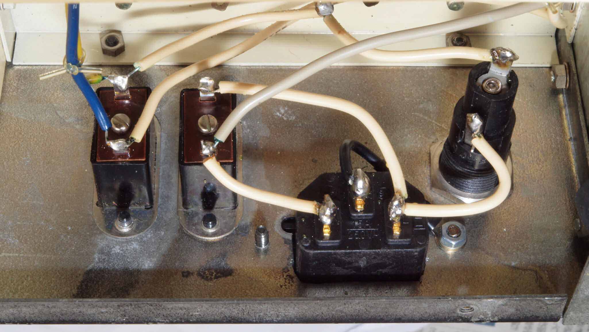CC4. 修理後 電源ソケット裏配線。3Pインレットのアースはしっかり取る。