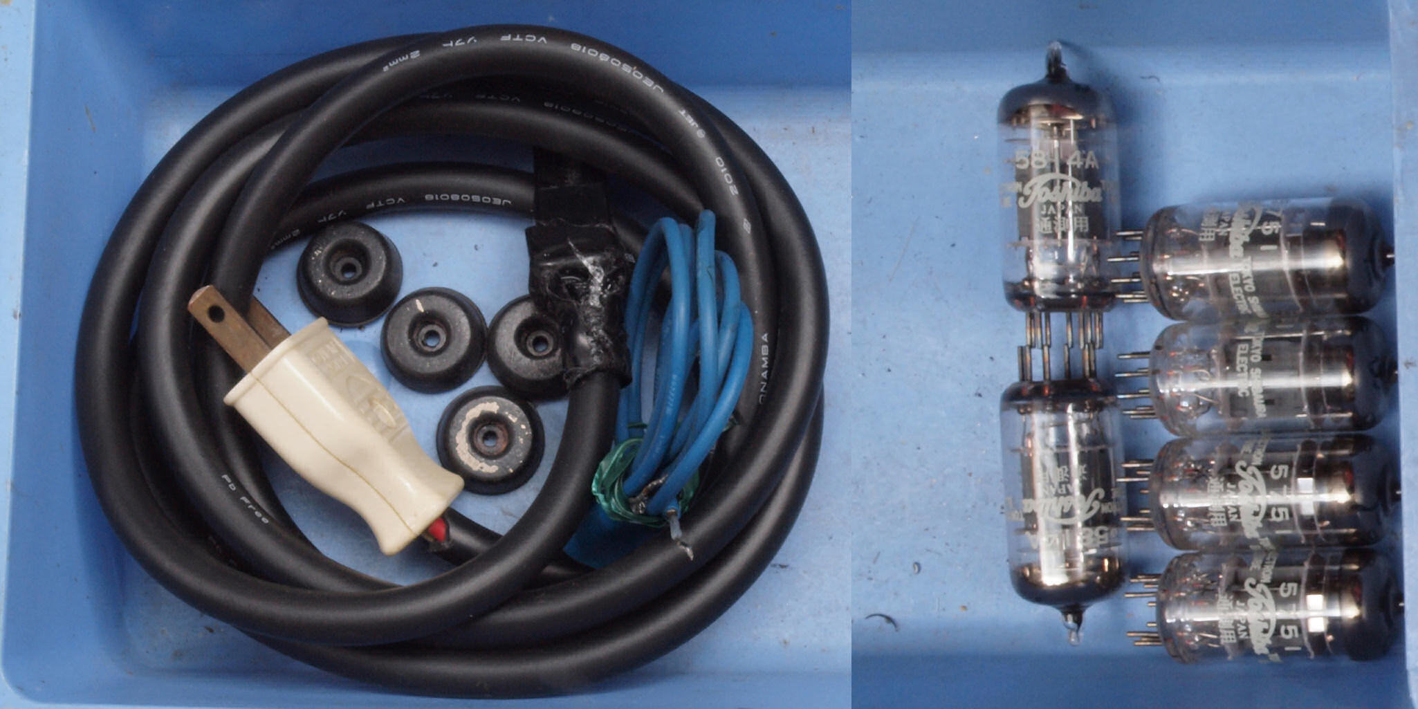 A61. 点検中 付属真空管 5751(12AX7互換)左から1本目、2本目..4本目、5814A(12AU7高信頼菅)左から1本目、2本目。