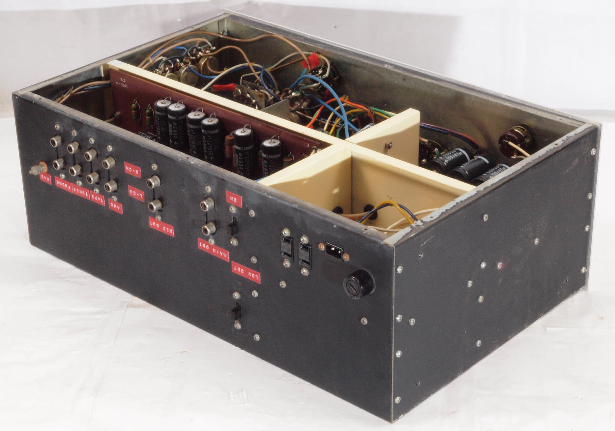 (オークション落札ではありません) 私がAudioを始めた頃の真空管のコントロールアンプ、当時は高嶺の花で雑誌で眺めていた程度、同社のパワーアンプP35-Vを使用していたことを思い出し、早速、稼働を確認したところ、次の症状が出てました。