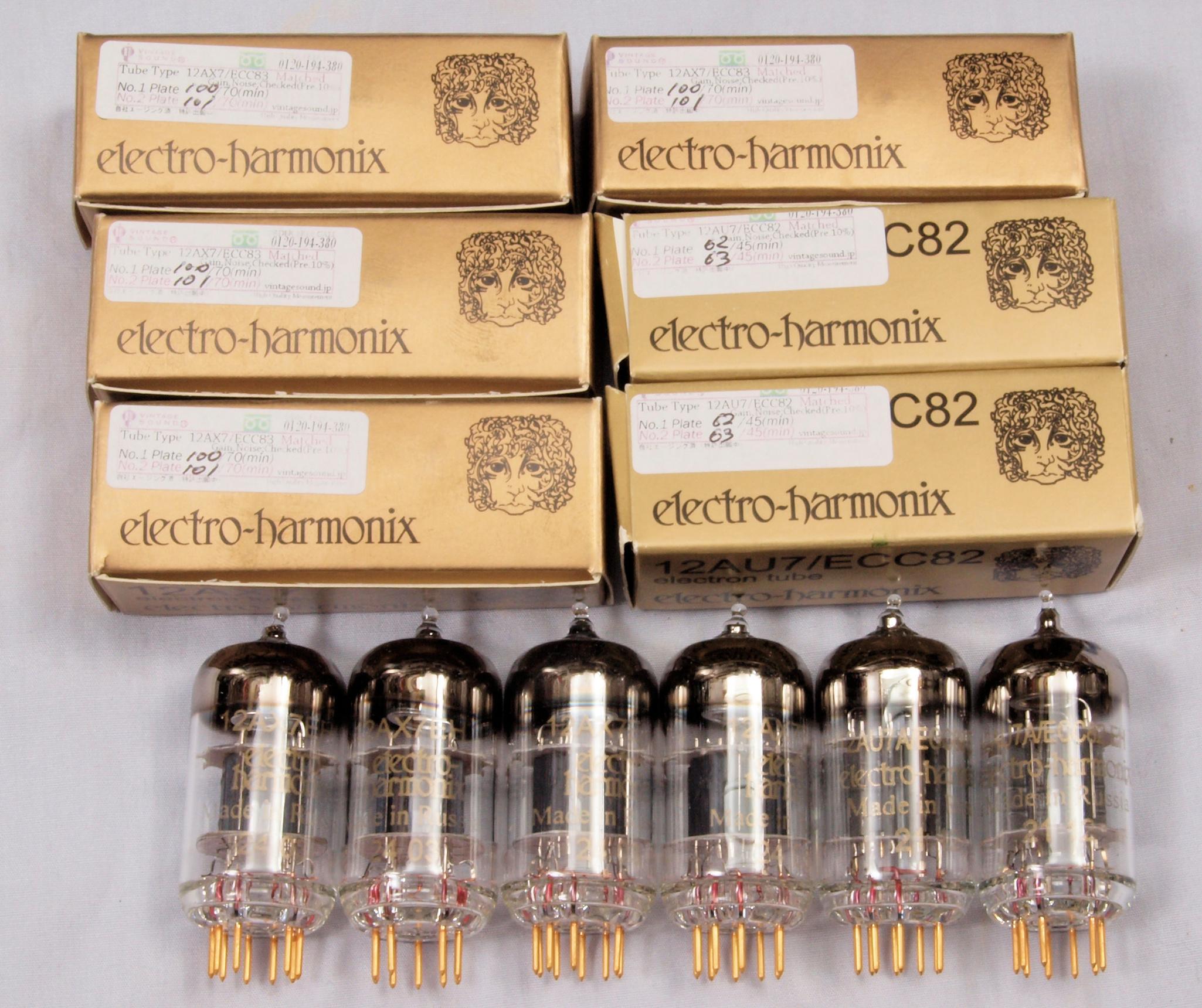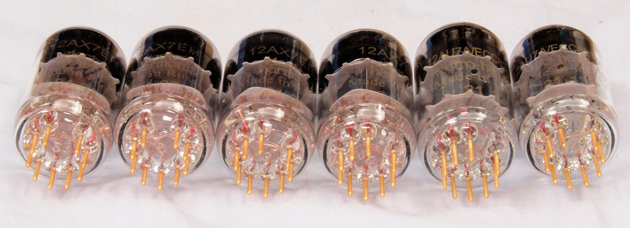 A71. 点検中 購入真空管 12AX7Gold左から1本目、2本目..4本目、12AU7Gold左から1本目、2本目。