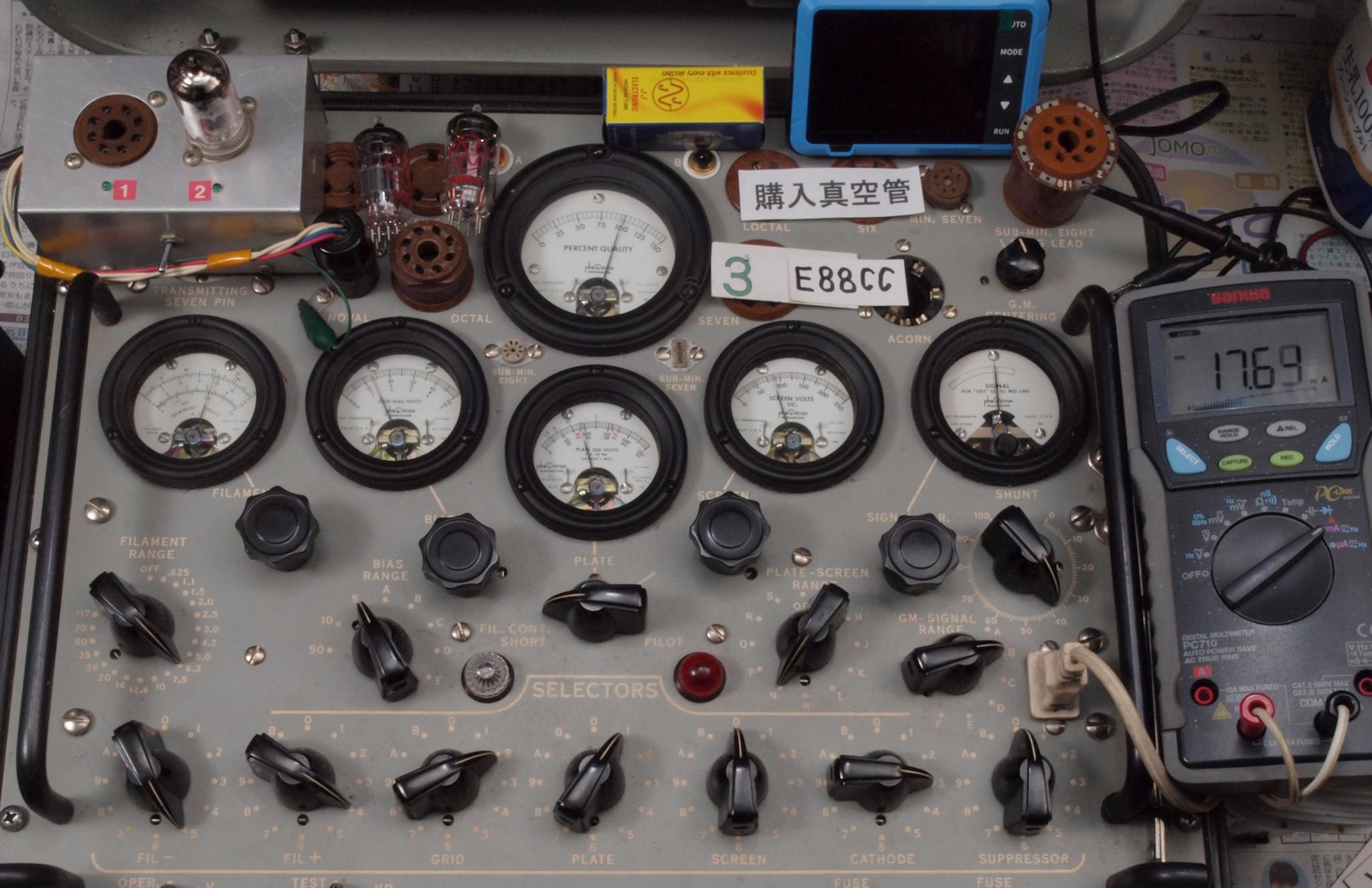 | V42. 購入真空管 E88CC−4本目ユニット2測定。 Gm測定=8500μmho、IP=14.28mA。 | ||||||||||||||||||||||||||||||||||||||